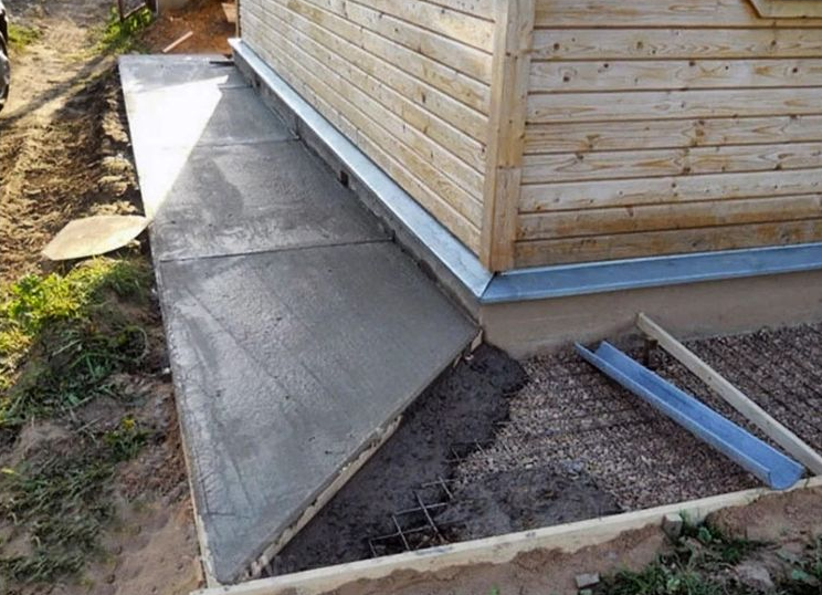 Наиболее часто при возведении частных домов обустраивается отмостка жесткого типа с заливкой бетона. Порядок действий описан ниже.