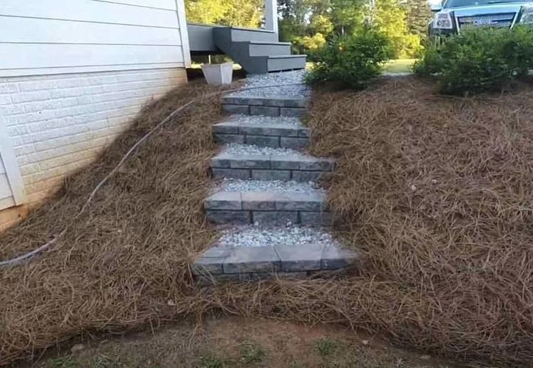 Поэтому мы предлагаем альтернативный вариант — сделать ступеньки на склоне из каменных блоков, которые используются для строительства опорных стен и цветочных клумб.