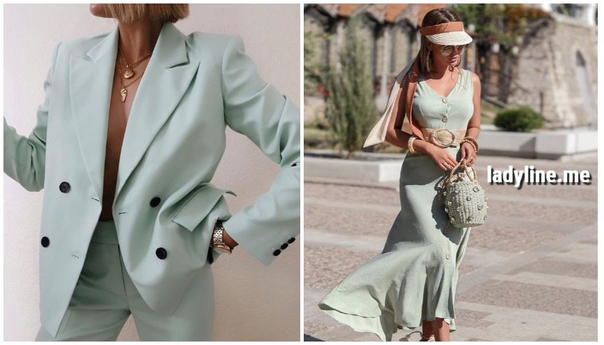 В 2021 году института цвета Pantone представил нашему вниманию шикарный и многогранный нежный цвет шалфей. Это выразительная комбинация зеленого и серого цветов. Достаточно сложный и «капризный» оттенок смогли “приручить” современные кутюрье, ярким доказательством этого являются коллекции женской одежды в 2021 году. Сегодня мы покажем вам, как с помощью этого нетривиального цвета можно разнообразить свой базовый гардероб и «оживить» повседневные образы. Легкое и воздушное платье в стиле беби долл комплементарного цвета шалфей выглядит, как наряд настоящей принцессы. Сумка-клатч в таком же оттенке + бежевые минималистичные босоножки — в этом образе прекрасна каждая деталь! Брючные костюмы в оттенке «пустынный шалфей» наряд, который можно комбинировать с атласными майками в пастельных оттенках, а также золотыми украшениями или бижутерией. Минималистичное платье в стиле бохо, в данном случае, стилисты преобразили за счет темного жакета и бежевых балеток с жемчугом. Принтованный комбинезон