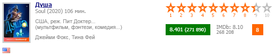 "Душа" в очередной раз (что-то подобное мы уже видели в "Тайне Коко") возвращает нас к размышлениями о жизни и смерти, смысле существования и загробном мире. Надо отдать авторам должное - рассказать о таком без ужасов и религиозного морализаторства - это подлинный талант. Пришлось, правда, для этого выдумать целый новый мир, функционирующий по своим правилам, законам и внутренней логике, но на что не пойдешь, чтобы донести идею. Мультфильм, безусловно, хорош, он красивый, яркий, говорит о важном и нужном. Единственное, что меня напрягало и напрягает в нынешних мультфильмах Пиксара - это тот самый налет шедевральности. Никак не могу отделаться от мысли, что каждый новый проект будто бы соревнуется с предыдущим, а каждый из составных компонентов полируется до настолько идеального блестящего состояния, что иногда прямо таки слепит глаза.