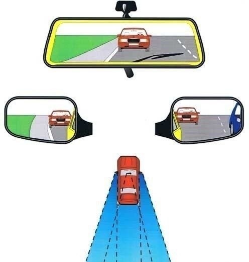 Регулировkа зерkал. По статистике у 90% водителей зеркала отрегулированы неправильно Если вы, взглянув в боковое зеркало, видите заднее крыло своего автомобиля, это значит, что зеркало настроено неправильно. При таком расположении зеркала большую часть зоны за автомобилем видно и в боковые зеркала, и в зеркало заднего вида. В то же время зона рядом с автомобилем просматривается очень плохо и создаётся опасность аварийной ситуации. Регулировка левого бокового зеркала Отклонитесь влево так, чтобы практически коснуться бокового окна. Настройте зеркало так, чтобы видеть заднее крыло автомобиля (как это показано на картинке). Когда вы привычно устроитесь в кресле, в зеркале вы практически не увидите боковое крыло своего автомобиля. Регулировка правого бокового зеркала Отклонитесь вправо так, чтобы ваша голова находилась по центру автомобиля. В зеркале вы так же должны увидеть заднее крыло авто (см. картинку). Регулировка зеркала заднего вида Центр зеркала заднего вида долже