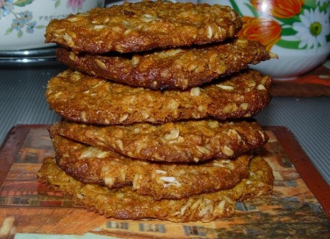 Оно просто неповторимое 🥰Хрустящее нежное и очень Вкусное 👌Рецепт простой без Яиц🥰🥰🥰 ——— ⬛️. Включайте сразу духовку ,так как масса очень быстро замешивается 👌👌👌👌 . ✔️Ингредиенты ✔️ 1. Стакан овсяных хлопьев 2. Стакан кокосовой стружки 3. Стакан пшеничной муки 4. 1/2 стакана сахара 5. 100 гр сл.Масла 6. 1,2 ст.л мёда 7. 1 ч.л мёда + 2ст.л кипятка 8. Щепотку ванили и соли ———————————————————————- ✔️ В большой миске смешиваем Овсяные хлопья , кокосовую стружку ,Муку ,Сахар , щепотку Соли и Ванили ✔️Все хорошо перемешиваем 👌 ✔️В сотейник кладём СЛ.Масло и Мёд 🍯Нагреваем на Огне пока Продукты не Растворятся в единую жидкость 👌👌👌 ✔️Гашенную соду кипятком добавляем В Медово Сливочную смесь и перемешиваем 🙊👌 ✔️Пока ещё горячую смесь вливаем в сухую смесь 👌🥰И перемешиваем ,в конце можно помогать руками 😉 ✔️С виду масса может казаться рассыпчатой ,Но не бойтесь по мере Формирования Печенья Оно прекрасно держит форму👍👍👍 ✔️Формирум Колобочки Размером чуть больше грецкого ор