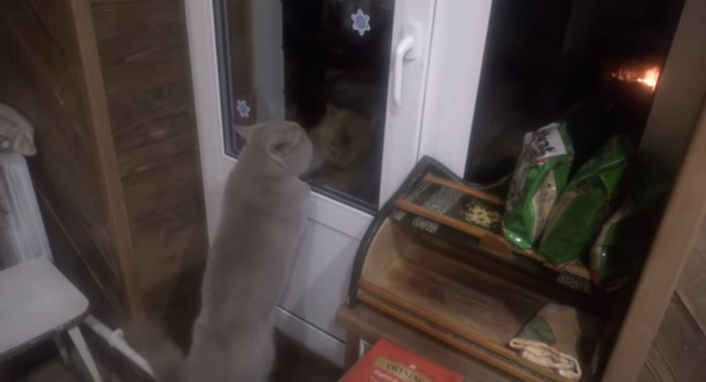 Ещё одно забавное видео про котов. Зачастую им в жестоких схватках приходится доказывать своим сородичам кто главный на районе. Так произошло с домашним котом Яковом. В доме хозяев есть стеклянная дверь, которая выходит прямиком на улицу. Яков стоит возле нее, вздыбив на спине шерсть и заутробно воет. Все потому, что с обратной стороны двери стоит рыжий уличный кот. Непорядок, ему стоит показать, кто тут гроза района. Домашний кот рвется в бой, но вот незадача, дверь то закрыта. Среди его завываний можно отчётливо услышать слово «открой». Яков повторяет его несколько раз. Не добившись успеха, он издает звук, в котором можно различить фразу «открой мне!». Хозяева на уговоры кота не поддались. И правильно сделали, возможно после драки с рыжим котом, Яков научился бы говорить непечатные слова. Стычки котов явление частое. Основной причиной этому служит желание установить свое главенство на территории. У животных вызывают агрессию сородичи, появившиеся в поле зрения на территории, которую