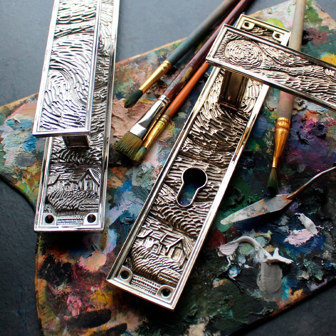 Для создания авторской коллекции фурнитуры мы выбрали одну из самых известных картин художника, написанную во время его пребывания в Сен-Реми, - «Звездную ночь». В дизайне удачно соединены лаконичная геометрия и фактурность мазков Ван Гога. Потрясающая рельефность ручек достигнута благодаря технологии художественного литья. Фурнитура с таким высокохудожественным «зарядом» украсит практически любой интерьер, придаст ему неповторимый шарм.