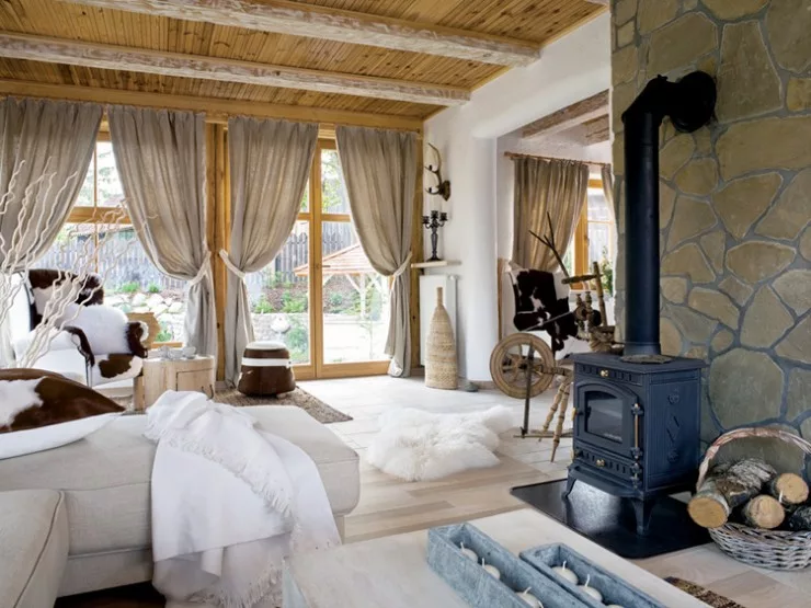Декор с размахом Каждый загородный дом уникален: типовых решений в декоре коттеджей нет, поэтому к каждому дому нужен персональный подход. Это всегда сложная и при этом очень интересная задача, огромное поле для творчества как для клиента, так и для декоратора Какие особенности в оформлении загородных домов мы можем выделить? Большое количество оконМожно переборщить! Поэтому избегайте хаоса в цветовой палитре и старайтесь использовать единый базовый цвет с небольшими акцентными включениями. Если вы не определились с оттенком, то рекомендуем выбрать тот, что будет созвучен со стенами или крупной мебелью в комнате. Нестандартная конфигурацияОкна в коттедже зачастую имеют оригинальную форму или большую высоту. Эркеры, витражные окна, второй свет, арки, скошенные и мансардные окна каждый вариант требует от декоратора тщательной проработки как с эстетической, так и с технической стороны. Разнотипность оформления интерьеров Вам нужны шторы на весь дом, но за каждой дверью совершенно раз