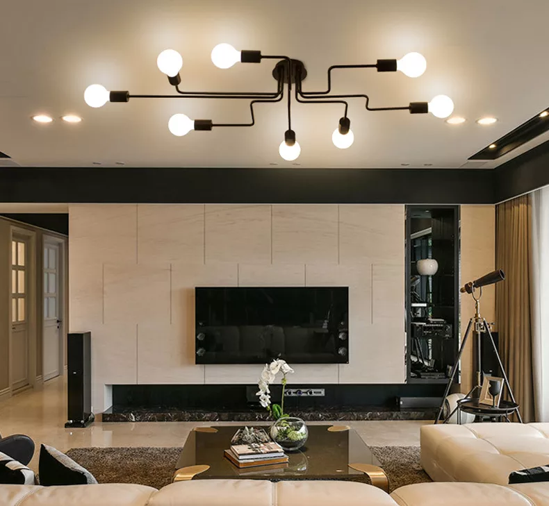 Рубрика АНТИтреш в освещении гостиной. ПогналиЛюстра по середине комнатыДедовский способ, не предвещает ничего плохого кроме тусклого света если промахнетесь с количеством лампочек и резких теней но вдруг вы так и хотели.Я советую дополнять точкамиЛюстра по центру и, как перестраховка, пару пар точек по периметру. Жить не мешают, а добавить света и сделать его рассеяным помогут.Люстра для акцентаИспользуется для создания уединенной атмосферы, зонирует.В гостиной это свисающий светильник над мягкой зоной. НО, так что бы вы вставая с дивана не таранили люстру головой.Или над столом, если гостиная и столовая это одно помещение.Люстра-паукКроме базового расположения имеет еще много вариантов.Основные плюсы: стоит мало под заказ можно сделать любого цвета и длинны провода нужен всего 1 выпуск электрики можно разбить на несколько выключателей дает рассеянный свет не стандартное решениеМинус только один. Высота потолков. Если меньше 3 м - не вариант.Точечные светильники. Уже разобрали