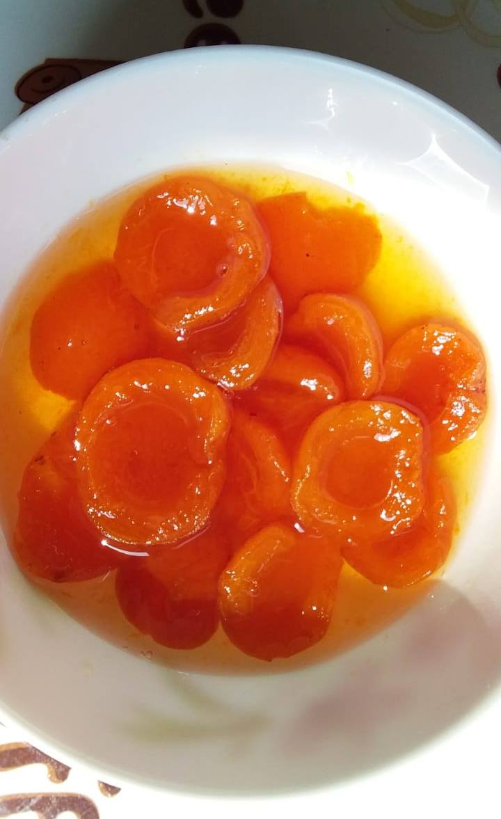1. Делаем сироп на 2 кг. абрикос берем 1,6 кг сахара и 250 мл. воды. В сахар добавляем воду и доводим до кипения. 2. Абрикосы моем и удаляем косточки. Погружаем в кипящий сироп, даем закипеть и выключаем огонь. Даем постоять 8 часов. Прошло 8 часов ставим варить на медленном огне после закипания варим 10 мин. убираем до полного остывания. Провариваем последний третий раз на медленном огне после закипания 10 мин. Варенье готово. P.S. Приятного аппетита :) Ингредиенты: Абрикос – 2 кг. Сахар – 1,6 кг. Вода – 250 мл.