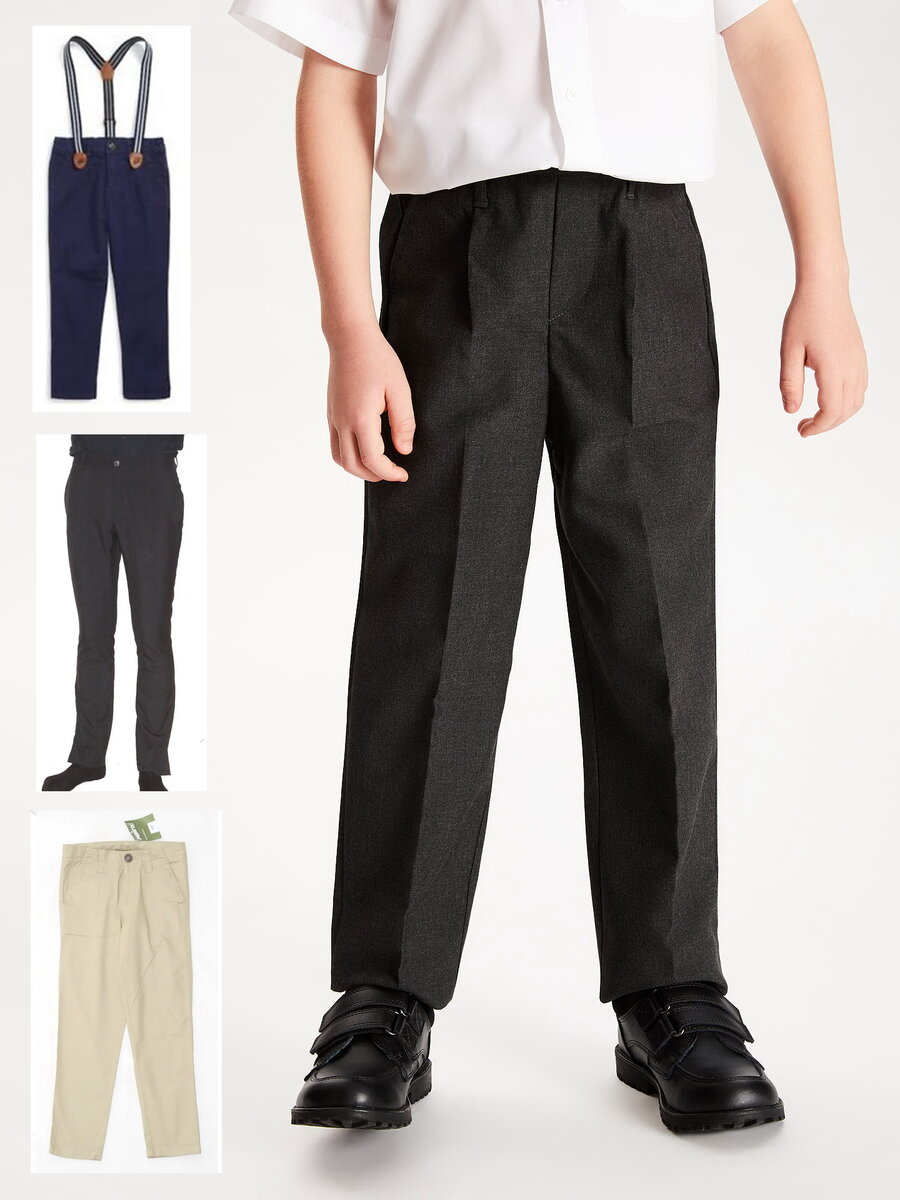 В этой статье мы сознательно умалчиваем о таких видах брюк как карго, слимы, хаки, вельветы и т.п. так как из-за особенностей кроя и материала не рекомендуем рассматривать их в качестве альтернативы как школьным брюкам, так и одежде-сменке