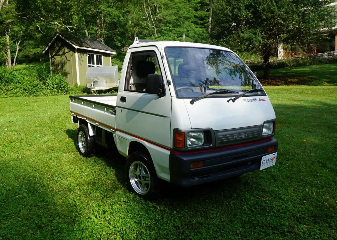 Каким должен быть идеальный небольшой грузовичок – вопрос на который нет однозначного ответа, каждому важны свои параметры. Обобщенно, конечно, считается что он должен быть компактным и недорогим, с грузоподъемностью примерно пол тонны. На мой личный взгляд под критерии идеального сверхкомпактного грузовика попадает вот эта машина. Daihatsu Hijet Climber из не такого уж далёкого прошлого. Конкретно этот – поздний представитель седьмого поколения, выпущен в 1993 году, с небольшим «колхозом» в виде широких колёс 175/70/13, в оригинале здесь 155/70 R12C. «Хайджеты» так же известны в виде микроавтобусов, я видел даже крохотный автодом на такой базе, но в своей основе машина всё же грузовая. Построена она на раме. Двигатель находится за водителем, кабина к раме крепится жестко, поэтому для доступа к передней части мотора надо поднять сиденье, а к задней – открыть люк в грузовой платформе. Мотор трёхцилиндровый, карбюраторный, объемом всего 660 см3. В экспортной версии был доступен более объ