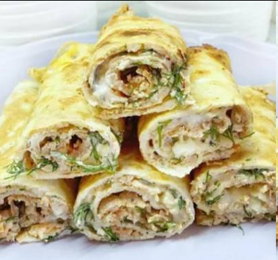 Ингредиенты на 3 штуки: ⠀ - 1 куриное филе ( 250гр) - 3 яйца - 30гр молока 2.5% - 80гр сметаны - 20гр укропа - 1 маленькая луковка - 10гр подсолнечного масла - соль, французские травы. Куриное филе с солью, приправой и луком смолоть в фарш и обжарить.⠀ Смешать 1 яйцо и 10гр молока, посолить и испечь блинчик. Повторить еще 2 раза. Сыр натереть. Сметану смешать с солью, приправой, укропом - это наш соус.⠀ Собираем - берем блин, смазываем соусом, посыпаем сыром, выкладываем фарш и заворачиваем рулетиком. ⠀