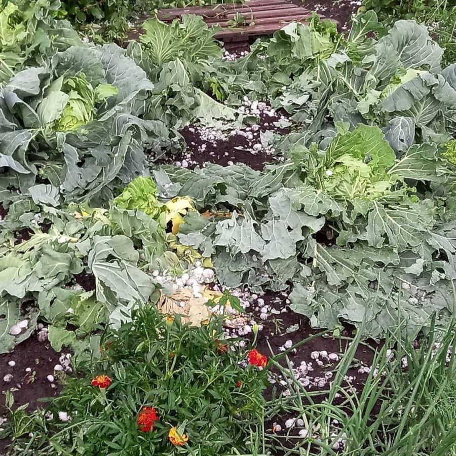 В пятницу в Топкинском районе разбушевалась непогода: выпал крупный град, который нанёс урон выросшему на участках урожаю. Снимками последствий поделились в соцсетях жители деревни Шишино. «Вот так 30 июля в 17:40 второй месяц лета закончился», - написал автор. Как видно на фотографиях, град серьёзно повредил растения: размолотил кочаны капусты и скосил огурцы. Фотографии от подписчика группы «Инцидент Кузбасс» ВКонтакте.