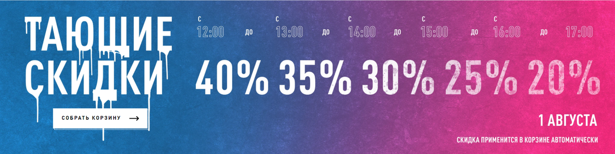 Доп.скидка зависит от времени покупки (мск): Скидки применяются в корзине автоматически! Каждый час размер скидки уменьшается. Чтобы успеть, набирайте корзину и ждите 12:00 мск. Скидки на Adidas | Скидки на Reebok Если наши статьи оказались вам полезны, можете поддержать нас на Patreon. Или выберите другой способ поддержать проект. Даже маленькая помощь — большой вклад в наше дело. Читайте Training365.ru, подписывайтесь на нас в Telegram, Instagram и Вконтакте.