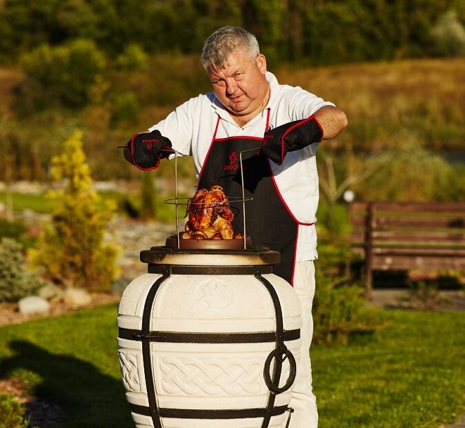 ШАШЛЫК "МЯСНОЕ АССОРТИ С АНАНАСОМ" В ТАНДЫРЕ Почему мы выбрали этот рецепт? Во-первых, в нем участвуют разные виды мяса. А во-вторых, присутствует такой довольно необычный для шашлыка ингредиент, как ананас, который придает шашлыку сочность, кислинку, сладость... Интересно! На две порции понадобится: свинина (шея) - 200 г говядина (филе) - 200 г свежий ананас - 200 г приправа для мяса (у нас есть приправа для шашлыка, она отлично подойдет) - 10 г Приготовление займет приблизительно 45 минут. Мясо натереть приправой, помариновать. Нарезать плоскими кусочками и нанизать на шампур, чередуя с кольцами ананаса. Поместить шампуры в разогретый тандыр и закрыть крышкой. Готовить до отсутствия кровяных подтеков и образования румяной корочки. БАРАНЬЯ НОГА В ТАНДЫРЕ Не всякая кулинарная техника позволяет приготовить ногу целиком, а тандыр - пожалуйста! Обратите внимание, что приготовление блюда начинается за несколько дней: мясо должно настояться в маринаде. Понадобится: баранья нога - 1 ш