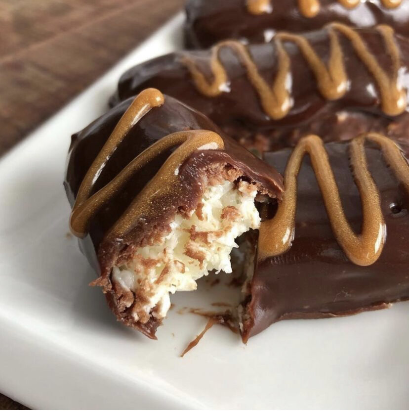 Сегодня будет невероятный рецепт батончиков «Баунти» ! ⠀ Из данного количества ингредиентов получилось 10 шоколадок) На вкус не отличишь от магазинных! Только здесь нет никаких стабилизаторов, ароматизаторов и тд. Ещё и себестоимость одной шоколадки выходит в три раза дешевле! ⠀ Ингредиенты: - Кокосовая стружка - 100 гр. - Сгущённое молоко - 1/5 б. - Шоколад - 1,5 шт. Или 130 гр. - Молоко - 1-1,5 ст.л. ⠀ Способ приготовления: 1. Кокосовую стружку смешиваем со сгущенкой. Масса не должна быть жидкой. Она получится слегка суховатой, но спокойно будет склеивать кокосовую стружку. 2. Выкладываем в квадратный контейнер и отправляем в морозилку на 1 ч. 3. Через час достаём массу из морозилки, выкладываем на доску и разрезаем на одинаковые батончики. Масса не заледенеет, а лишь хорошо пропитается и стает более плотной. Поэтому конфеты можно легко подправить по форме. 4. Шоколад растапливаем на водяной бане с небольшим количеством молока. 5. Окунаем батончики в слегка остывшем шоколаде и от