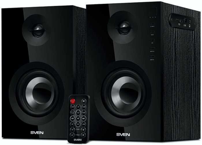 Эта система определенно является одним из лучших устройств в своем ценовом сегменте и сделает вашу музыку по-настоящему приятной. Модель оснащена ВЧ-динамиками куполообразной формы, которые воспроизводят очень насыщенные и детализированные высокие частоты. 50 Вт мощности более чем достаточно для незабываемой домашней вечеринки. SVEN SPS-721 имеет деревянный корпус, который раскрывает весь акустический потенциал. Купить колонки в интернет-магазинах электроники Функциональные особенности этой модели не менее впечатляют. Встроенный модуль Bluetooth обеспечивает связь с любым портативным устройством, будь то ноутбук, планшет или смартфон: каждое из этих устройств превратится в источник звука высокого качества. Эта акустическая система поддерживает воспроизведение с USB-накопителей и SD-карт. Наконец, он имеет удобно расположенные разъемы для наушников и дистанционного управления: SPS-721 предлагает все, что вам нужно. что может понадобиться настоящему аудиофилу. SVEN SPS-721 с передней пан