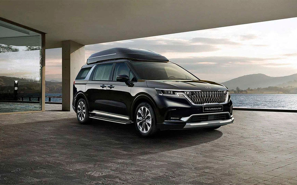 Как правило, лимузином чаще всего называют автомобиль, который существенно больше стандартной версии. Внутри это роскошь в каждой детали, топовые материалы отделки и просторный салон. В данном же случае Киа Карнивал получился лишь немного длиннее. Точнее это 4-ох рядная версия кузова, но всего на 4 посадочных места, а не на 11 пассажиров, как на то рассчитана длина кузова. Новый лимузин Kia Carnival в списке компании числится как HiLimousine, что сразу говорит о нестандартном решении внутри. В длину такой минивэн составляет почти 5,2 метра и большая часть интерьера отведена лишь 2-ум пассажирам. Многие уже отметили, что внутри Kia Carnival HiLimousine больше напоминает чартерный авиалайнер. Сиденья двух задних пассажиров Kia Carnival HiLimousine действительно роскошны. Максимальный набор функций, качественная обшивка и два отдельных, независимых подлокотника. Опционально покупателю предлагают установить массажёр для ног фирмы Hutech. Салон лимузина Киа Карнивал 2021 порадует большим цв