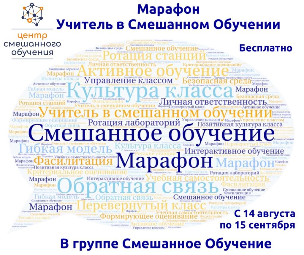Приглашаем вас принять участие в бесплатном практическом марафоне изменений «Учитель в смешанном обучении« В рамках марафона вы разработаете сценарии уроков или спланируете преподавание выбранной темы в смешанном обучении, познакомитесь со смешанным обучением, научитесь формировать культуру класса в смешанном обучении и давать конструктивную обратную связь. Марафон стартует 14 августа и продлится до 15 сентября.