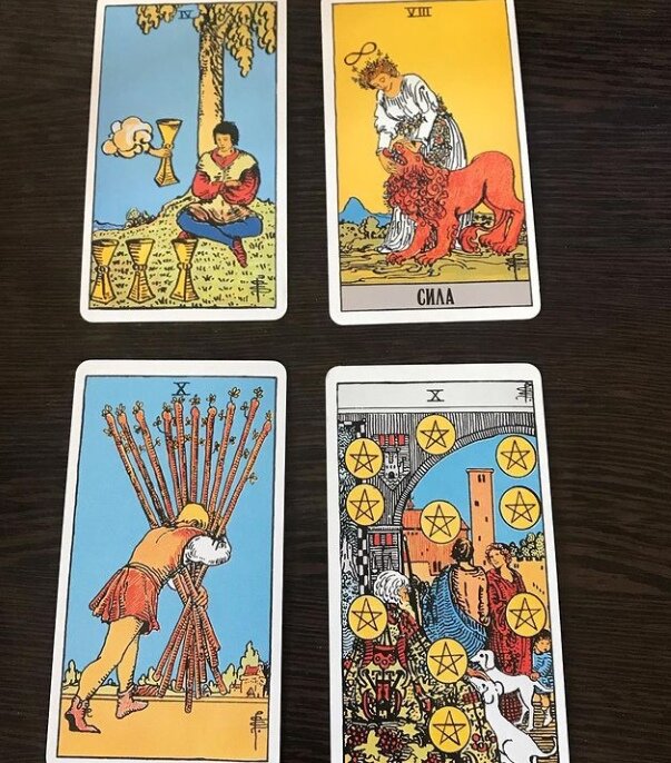 4.Десятка пентаклей.Партнер явно скучает по вам, но при этом он думает