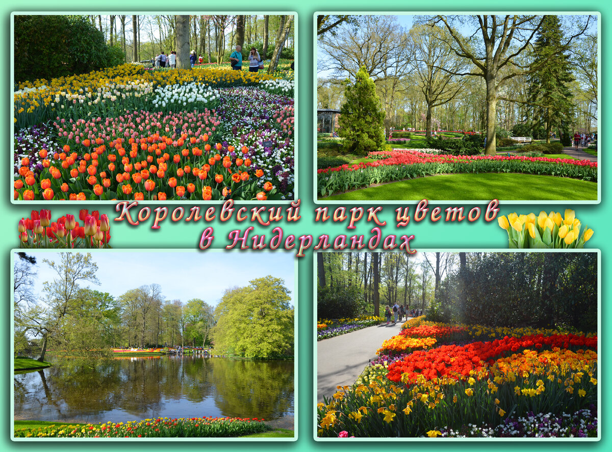 Кекенхоф ( Keukenhof ) — королевский парк цветов в Нидерландах. Также известен под названием Сад Европы (Garden of Europe). Keukenhof расположен почти на самом побережье между Амстердамом и Гаагой в небольшом городке Лиссе. Сегодня парк Кекенхоф - это раскинувшееся на площади в 32 гектара море восхитительных весенних цветов, переливающееся всеми мыслимыми и немыслимыми красками. Это старинный парк с вековыми деревьями и живописными прудами. Все это великолепие дополняют каналы, водопады и фонтаны. Это шесть миллионов тюльпанов, нарциссов, гиацинтов. И, конечно же, это самый большой и красивый весенний сад в Европе. Парк был основан в 1949 году. Это место за несколько десятков лет стало поистине самым цветочным местом Голландии и самым вдохновляющим для туристов со всех континентов. Часть экспозиции размещается в теплицах и павильонах, названных именами принцев и королей, где демонстрируются только новые, уникальные или выдающиеся сорта цветов, за чем следит специальный совет Кекенхоф