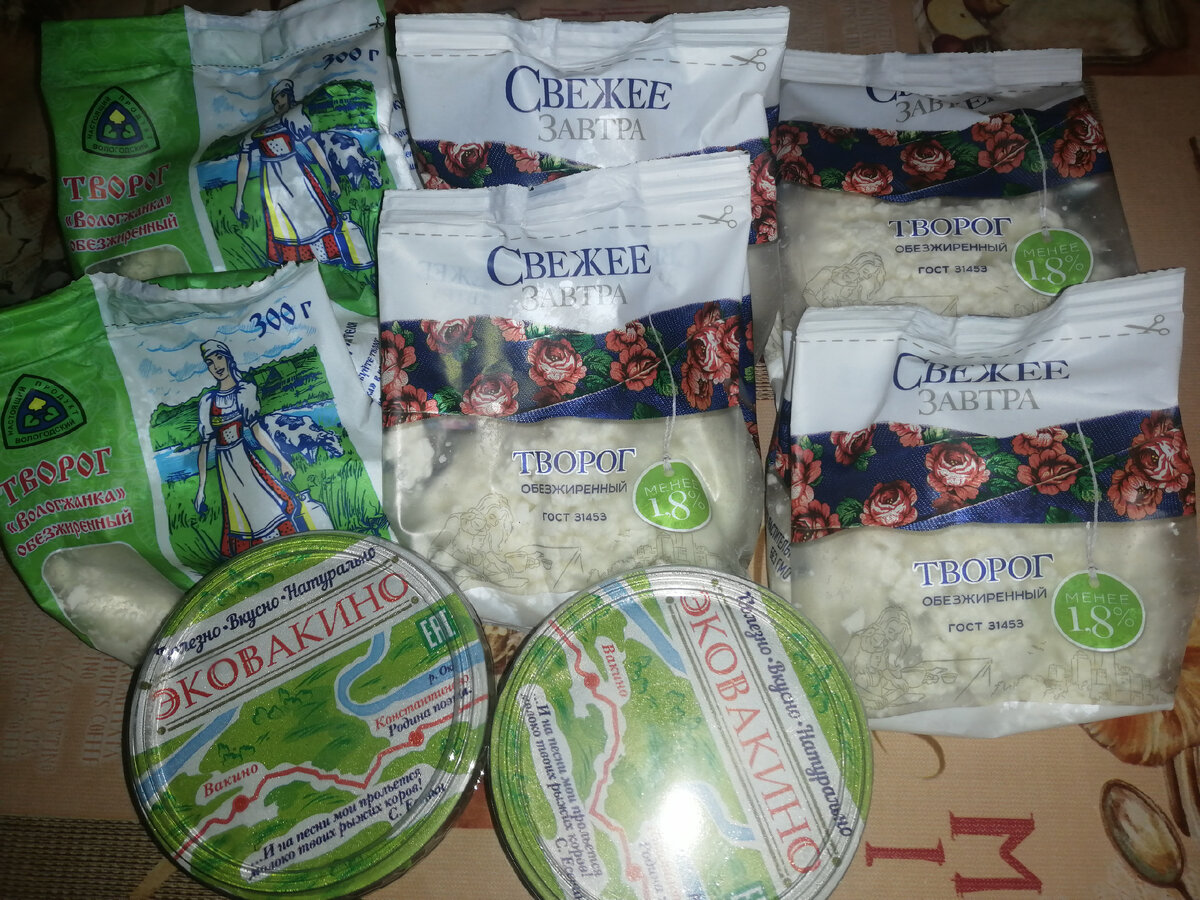 Всем привет! Некоторое время мне предстоит питаться не дома. И чтобы не возмущать посетителей канала видом пельменей на обед 😁 (шучу, не из-за этого), попросила сразу отвезти меня в магазин, закупиться базовыми продуктами. Закупка получилась относительно большая, но и приехала я не на один день. В этот раз взяла творог с жирностью 1,8%. Хотя сейчас подумала, как то не очень умно покупать нежирный творог и добавлять к нему сметану, у которой жирность куда как выше. творог "Свежее завтра" 200 г - 56р творог "Вологжанка" 300 г - 78р сметана "Эковакино" 180г - 25р Оба творога обезжиренные, но вот количество белка у них разное. И соответственно, количество калорий тоже. Раньше и внимания не обращала. У "Свежего завтра" белка - 18г/100г и 101ккал. У "Вологжанки" - белка 16г/100г и 93 ккал. Состав на 100г: белки - 11г, жиры - 19,2г, углеводы - 1,6г, ккал - 223,2 Не знаю пока, что делать с беконом, просто редко вижу в продаже именно говяжий, купила, потом придумаю. куриная грудка - 269р/кг