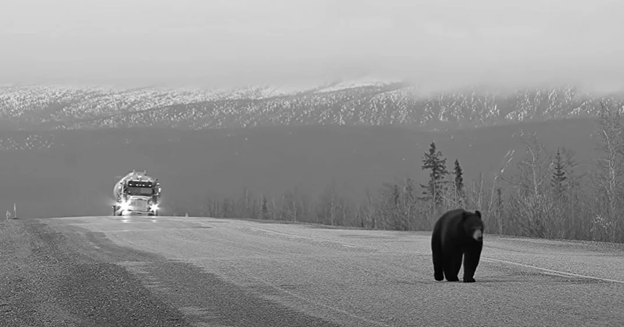 Трое медведей перекрыли дорогу, подъехав ближе увидел что в пасти одного медведя, что то шевелилось