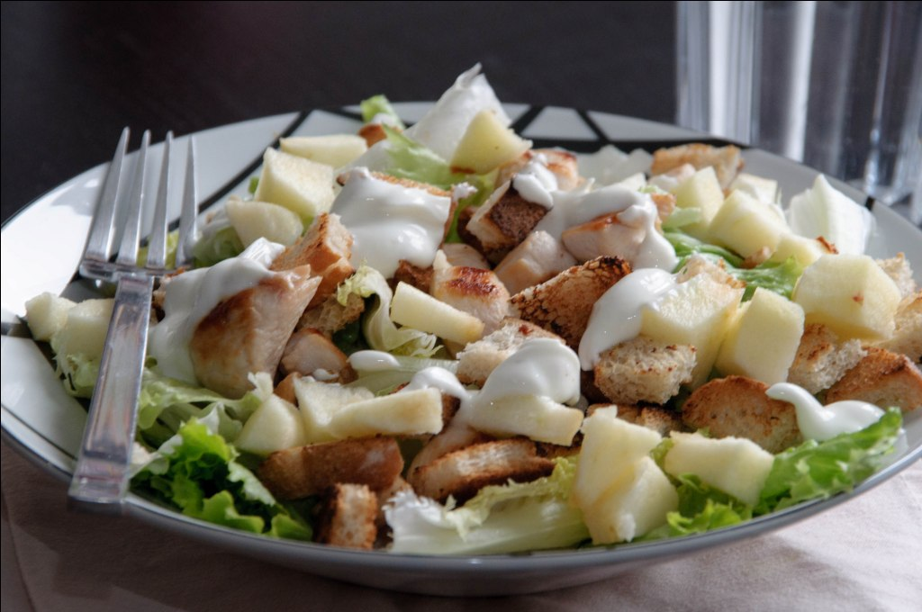 Для того чтобы приготовить салат следует: ♦ отварить картофель, морковь и яйца; 1. Овощи нарезать мелкими кубиками, соединить, заправить майонезом и перемешать. 2. Сверху салат посыпать зеленым луком. «Солнечный» Ингредиенты: Майонез – 2 ст. л., сухарики – 20 г, картофель – 4 шт., яйца – 2 шт., морковь – 3 шт., сыр – 50 г, лук зеленый – 2 пучка, соль, перец – по вкусу. Способ приготовления: 1 помидор вымыть, срезать верхушку и нарезать кружочками. Картофель сварить в мундире, остудить, очистить и нарезать дольками. 2 нарезанные соломкой морковь и картофель смешать с помидором, заправив майонезом. 3. Отдельно поджарить на сковороде мелко нарезанный репчатый лук, добавить нарезанные кружочками яйца, все смешать, заправила майонезом, выложить салат горкой. 4. Для заправки смешать майонез с горчицей, добавить пропущенный через пресс чеснок, соль и перец по вкусу, перемешать. Сверху салат посыпать нарезанным зеленым луком и тертым сыром. 5. Выложить салат в красивую тарелку, украсить ломт
