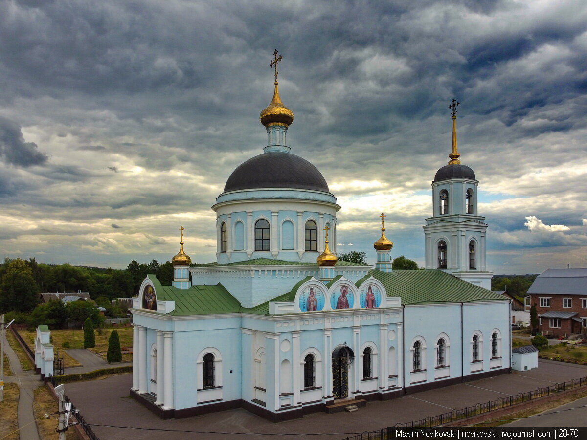 Проезжая по Средней полосе России, я оказался в самом сердце Рязанской области в месте под названием Солотча. И обнаружил в селе очень красивую и живописную церковь. Когда я услышал от местных жителей историю этого красивейшего храма - она меня поразила. Эту церковь в середине прошлого века хотели переобустроить в местную школу, но этого так и не произошло, и как говорят местные жители, не позволили это сделать именно они. Церковь Казанской Иконы Пресвятой Богородицы - красивейший шедевр архитектуры 1783 года. Местные жители, увидев у меня коптер, рассказали мне об этой удивительной церкви, которая некогда была частью упразднённого женского монастыря и чуть не превратилась в школу. Такое могло произойти только в СССР. Историю строительства в этом месте этого красивого живописного храма легендарная, связанная с правлением князя Олега Рязанского. На этом месте в конце XIV начале XVвека супруга князя Олега Рязанского княгиня Евфрасиния (Евпраксия) основала женский Зачатьевский монаст