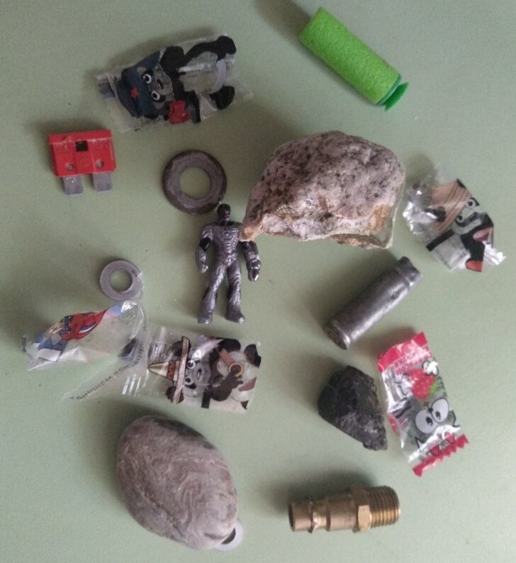 Я раньше, конечно, не раз слышала, что мальчишки таскают в карманах кучу всякого хлама. И даже стихи на эту тему есть. Только там не в кармане, а в портфеле. Но это сути не меняет. Несколько лет назад это началось и у нас. Сначала, пока сын был в садике, я находила у него в карманах небольшие камешки и палочки. Сейчас мы растем, и содержимое карманов растет вместе с нами! Взрослому мальчику уже не солидно обходиться маленькими камешками и веточками. Теперь у нас в карманах уже увесистые булыжники! Да не один. Порой бывает, что куртку поднять стоит усилий от того, чем нагружены ее карманы. Помимо камней, сынок регулярно приносит ржавые саморезы, болты, гайки. Для него это вещи чрезвычайной важности. А я его не разубеждаю. Он гордо, как добытчик отдает их дедушке. Что с ними делает дедушка, не интересовалась. Но никогда не говорит, что это хлам, чтобы не обижать ребенка. Берет с благодарностью. И сын этому очень рад! Это все, не считая фантиков от конфет. Которые все, конечно, очень ему