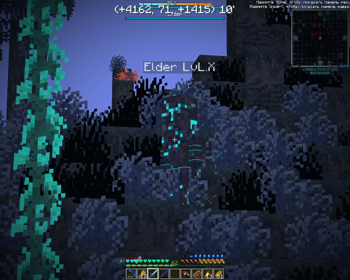 Сегодня мы завершили мод The Abyss: Chapter II. Далось это, честно говоря, не без проблем. Это был последний выпуск, который я посвящу полностью моду на измерение Бездны. В дальнейшем мы будем искать новые и интересные моды. А пока мы завершим этот мод. С вами MVA Gamer! Продолжаем выживание с модами от подписчиков! Для начала я вам хочу показать одного интересного моба из этого мода-Elder или "Старейшина". Нет, он не является боссом или мини-боссом, а просто враждебный к игроку моб. Также в прошлом выпуске мы с вами заполучили очки ночного видения для того, чтобы исследовать измерение Бездны, а ещё мне удалось найти плащ невидимости, если я не ошибаюсь Пока я исследовал мир, мне попалось какое-то растение. Я его сломал и получил странные листы бумаги. Потом увидел, где они применяются и понял, что таких мне нужно добыть как можно больше. Дальше я нашёл какую-то непонятную штуку, а затем заметил какого-то босса. Пришлось иди в файл конфигурации мода Survive и изменять параметры распол