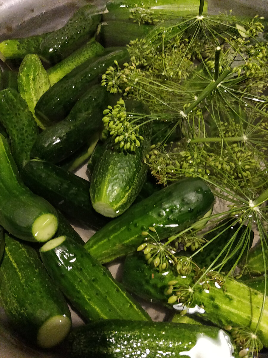 Ну вот и настало время когда каждая хозяюшка начинает готовить запасы на зиму. Сколько же было потрачено сил на рассаду, высадку и уход! Пора пожинать плоды своих трудов. Поделюсь с Вами своим идеальным рецептом засолки огурцов. И так, все по порядку... Огурчики тщательно моем, отрезаем кончики и оставляем в чистой в воде вместе с укропом, пока занимаемся банками. Банки я использую двухлитровые, на мой взгляд, самый оптимальный объем. Моем банку хорошенько под проточной водой с пищевой содой. После этого, убедившись что все чистенько, отправляем стерилизовать на водяную баню. Банка должна полностью прогреться. После этого можем приступать к наполнению. На дно банки укладываем укроп, чеснок. Добавок может быть множество - на любителя: листья базилика, смородины, хрена и так далее. Я ограничиваюсь укропом и чесноком. Затем начинаем укладывать огурчики, стараемся делать это максимально плотно.. Тем временем, ставим готовиться наш рассол. на 1 литр воды берем две столовые ложки соли, стол