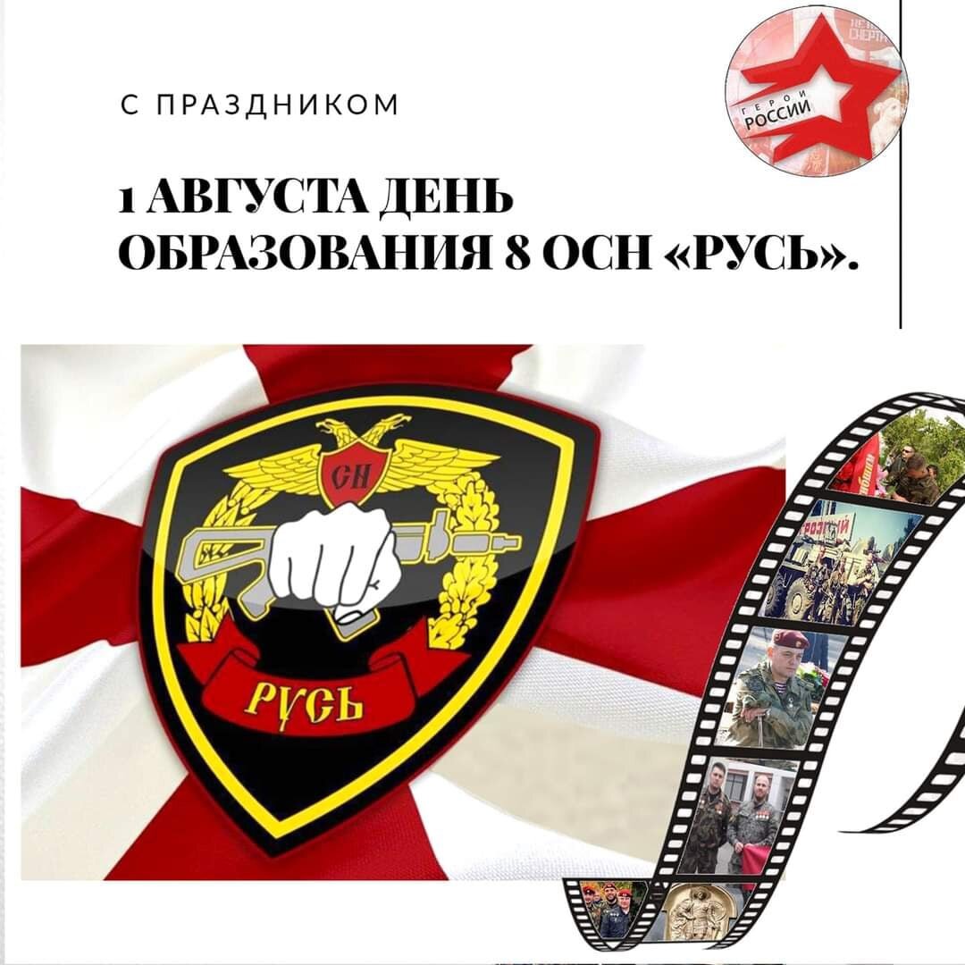 От всей души поздравляем ветеранов 8 ОСН «Русь» с днём образования воинской части! Будьте всегда удачливы, счастливы и здоровы. Пусть каждый день приносит вам радость и уберегает от невзгод. Счастья вам и вашим семьям. Отряд специального назначения Внутренних войск МВД «Русь» был сформирован 1 августа 1994 года на базе одной из воинских частей Отдельной дивизии оперативного назначения Внутренних войск. Главными задачами данного подразделения были — борьба с терроризмом, освобождение заложников, задержание или ликвидация вооружённых особо опасных преступников. Отряд принимал участие в освобождении заложников в школе г. Беслан 1 сентября 2004 г. Русь - расформирован в 2008 г., на базе 8 ОСН ВВ и ОСН "Витязь" создан 604 ЦСН ВВ МВД России.