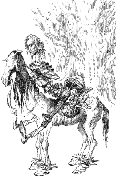 – Верно-верно. И это замечательный улей! Но ни одна пчела почему-то не летит в него, – расстроенно сказал Рыцарь. – Тут еще рядом привешена мышеловка. Но тоже пустует всегда. То ли мыши отпугивают пчел, то ли наоборот – пчелы мышей. – А я-то гадаю: зачем вам мышеловка? – сказала Алиса. – Не может же быть, чтобы на лошадях водились мыши. – Не может быть, – согласился Рыцарь, – но может случиться. И тогда от них покоя не будет. – Он помолчал и добавил: – Я думаю, что надо быть готовым ко всему. Видишь на ногах у моего Коня шпоры? – Зачем же Коню шпоры? – удивилась Алиса. – От акул отбиваться. Если они встретятся, – гордо заявил Рыцарь. – Моя выдумка! А теперь помоги-ка мне взобраться на Коня. Я провожу тебя до опушки. А это что за штука у тебя? – Блюдо для пирога с начинкой, – ответила Алиса. – Хорошая вещь, – сказал Рыцарь уважительно. – Пригодится, если по дороге наткнемся на пирог. Помоги мне запихнуть его в сумку. Ох и намучились они с этим делом! Алиса крепко держала сумку, а Белый