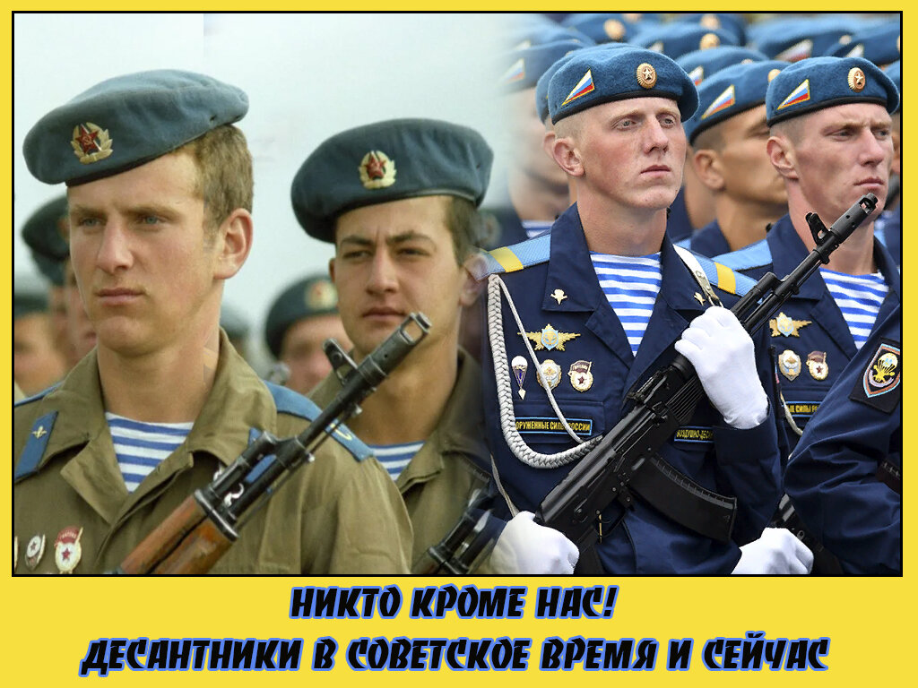 Ко Дню Воздушно-Десантных войск хочу показать вам сравнение десантников из СССР и сейчас на фотографиях. И тогда и в современное время ВДВ всегда отличала особая закалка и профессионализм. Посмотрим эти фото вместе! На парадах и в строю. Оружие осталось тоже, всем известный 5,45 мм Автомат Калашникова. 1968 год и знаменная группа российских ВДВ. У советских десантников уже снятый с вооружения 7,62 АКМС. Рукопашный бой всегда был визитной карточкой десантников. И в СССР и сейчас. Солдат в Афганистане и в Сирийской Арабской республике. Открытые и добрые лица бойцов ВДВ. В строю через годы. С праздником, товарищи десантники! Читайте и смотрите на канале: Российская военная угроза - ТОП 7 лучших дембелей. Смотреть, но не смеяться! За какие деньги будет работать простой участковый полицейский после повышения окладов? Посмотрите мои расчеты На какую выплату смогут рассчитывать ветераны боевых действий в 2022 году? Прогноз и анализ за предыдущие годы