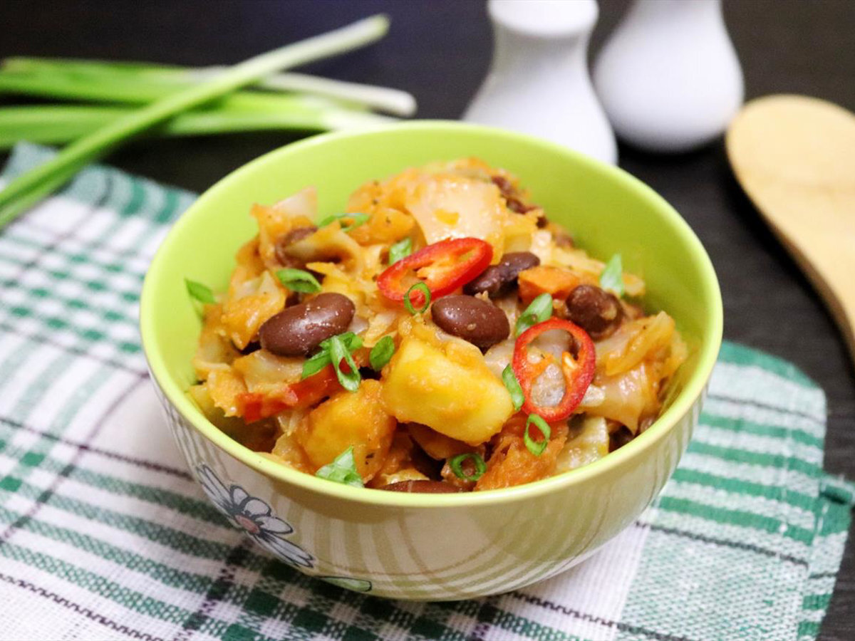 Овощное рагу - вкусное, полезное и универсальное блюдо, которое можно подать просто так на ужин или как гарнир к рыбе, птице или мясным продуктам. Такое рагу вкусное и в холодном виде. Дополнение в виде вареной фасоли делает блюдо сытным. Ккал: 84.74, время приготовления: 1 ч., порций: 6 #Вторые блюда #Русская #Европейская #Блюдо ПП #Гарнир #На обед #На ужин #Постное блюдо Ингредиенты Приготовление: 1. Подготовить продукты для блюда. Фасоль нужно сварить заранее или взять консервированную. Овощи почистить и помыть. 2. Нарезать картофель крупными кубиками, морковь маленькими кубиками. 3. Измельчить лук. 4. Капусту нарезать квадратами или соломкой. Немного посолить, поперчить и слегка помять пальцами. 5. На сковороде разогреть растительное масло и обжарить лук и морковь до легкой золотистости. Посолить. 6. Добавить лук и жарить еще минут 5-7 пока лук не станет мягким. 7. Все овощи должны быть доведены до полуготовности и слегка обжарены. 8. Отправить капусту к обжаренным овощам.