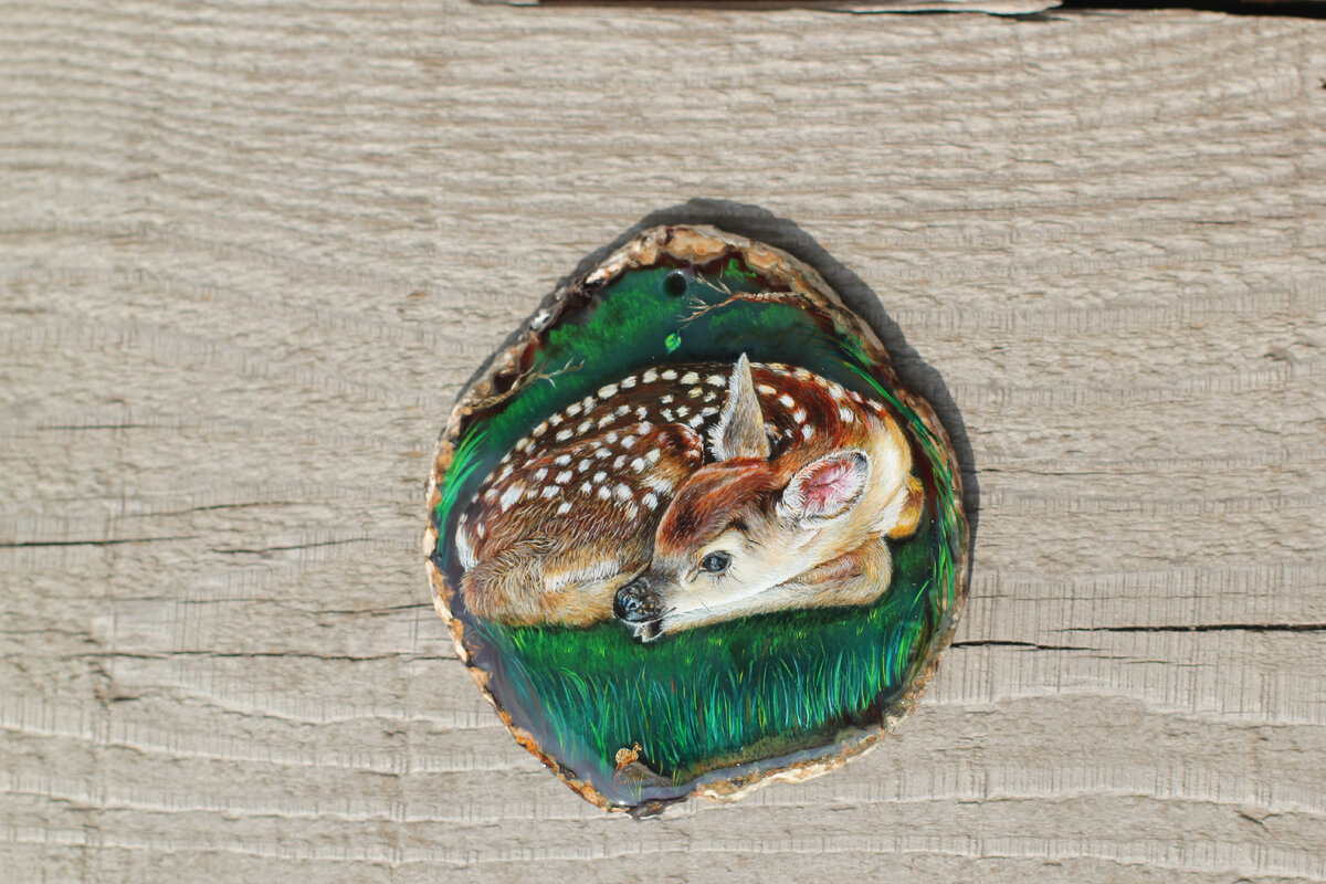 Роспись на зелёном агате масляными красками.