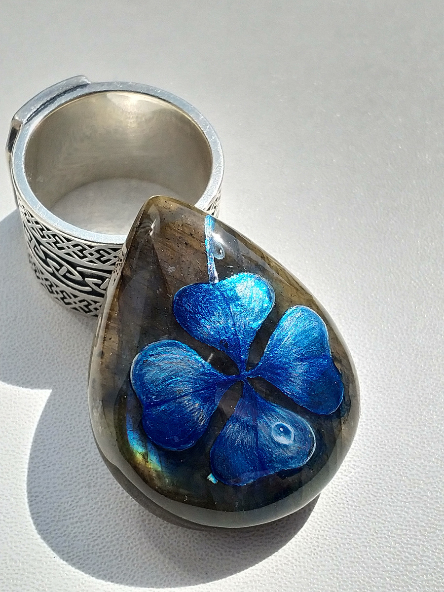 Лаковая миниатюра на лабрадорите масляными красками. Кабошон для кулона.