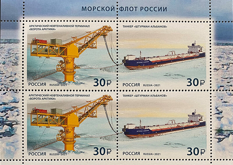 29 июля 2021 года Почта России выпустила в обращение две почтовые марки с изображением арктического челночного танкера «Штурман Альбанов» и арктического нефтеналивного терминала «Ворота Арктики» (проект «Новый порт», оператор – «Газпром нефть»). Пресс-служба ПАО «Совкомфлот»: Выпуск марок приурочен к 5-летнему юбилею ввода в эксплуатацию этой серии танкеров (головное судно принято в состав флота СКФ в августе 2016 года) и запуска терминала. Танкеры специально разработаны для проекта «Новый порт» с учетом особенностей акватории Обской губы. Появление судов типа «Штурман Альбанов» впервые в истории позволило осуществлять крупнотоннажную транспортировку нефти из Обской губы в режиме круглогодичной навигации, в том числе в тяжелых ледовых условиях. На сегодняшний день «Совкомфлот» эксплуатирует четыре судна серии: «Штурман Альбанов», «Штурман Малыгин», «Штурман Овцын», «Михаил Лазарев». За все время работы эти суда безопасно доставили из Обской губы в порт Мурманск свыше 17 млн тонн нефти.
