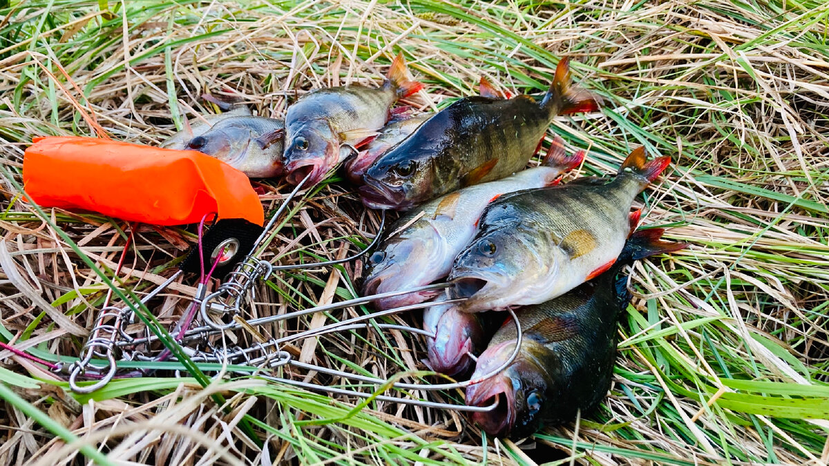 Всем привет! В этот раз решил выехать на разведку в новое место. На рыбалку, без учета дороги у меня было около двух часов. Место присмотрел со спутника, большое озеро в которое впадает протока, к этой протоке я и отправился. Глубина в первом месте была не большая, в среднем не больше метра. Для разведки глубин и коряг использовал небольшой джиг, как оказалось коряг тут очень много и с первых же забросов желтый силикон кто то атаковал, атаки были слабенькие, больше похоже на некрупного окуня. Совершив заброс в противоположную сторону, почувствовал слабый удар, потом ещё один в итоге на крючке оказалась некрупная щука, а спустя еще пару забросов около лодки увидел, как за наживкой шёл целый косяк окуня. В этот момент я и решил поставить вертушку ядовитых цветов, которую очень любит наш окунь. Спустя пару минут первый полосатый разбойник был уже на моем крючке. В один момент у меня немного запуталась леска на кончике спиннинга, блесна упала в воду, а я стал крутить спиннинг, чтоб расп