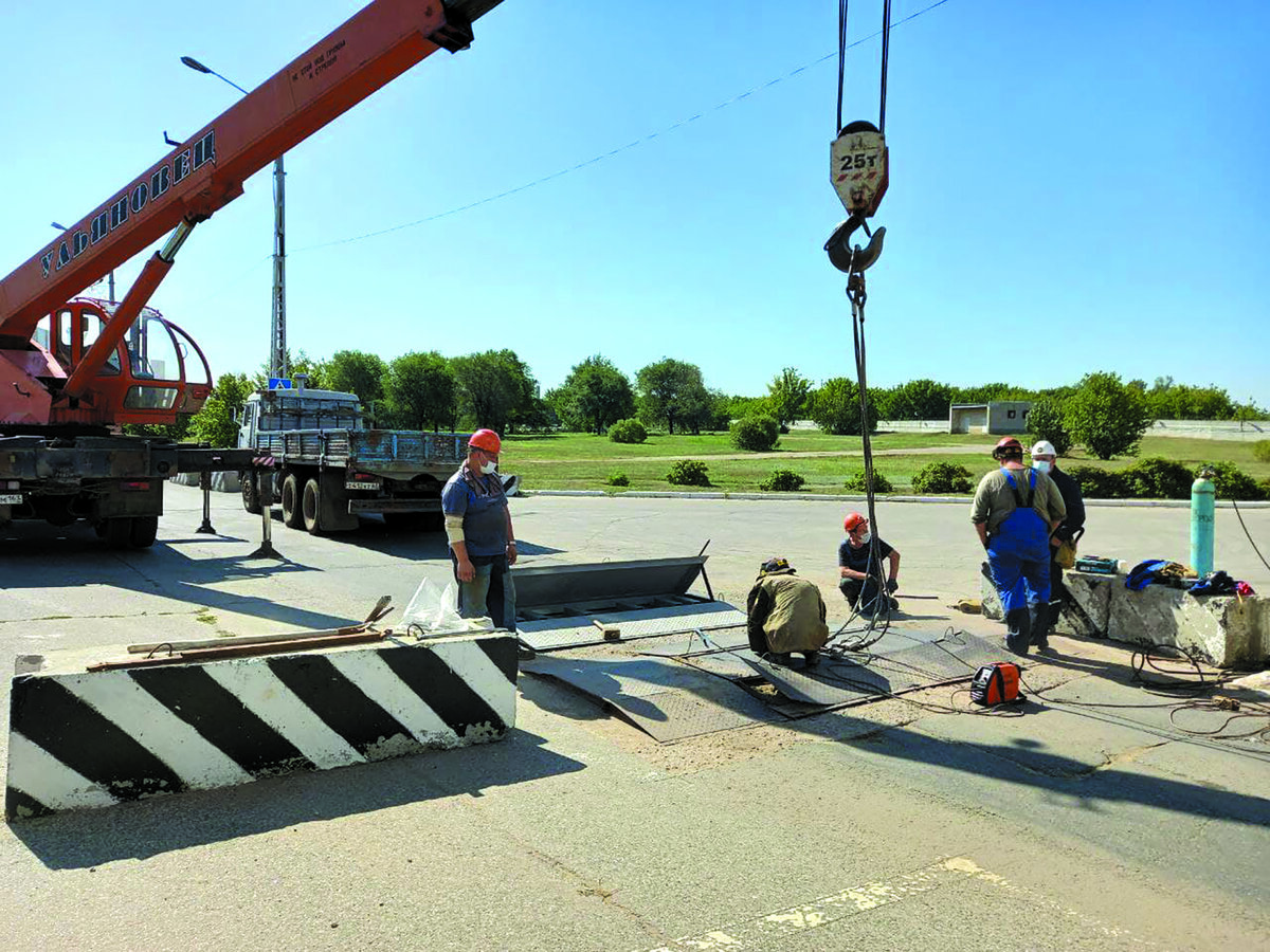 На главных въездных и выездных воротах завода усилили систему антитеррористической защиты. Изготовил и смонтировал оборудование цех №93. Как рассказал начальник цеха по ремонту и восстановлению нестандартного оборудования Сергей Башкирцев, на воротах заменили противотаранные устройства. На них приходится постоянная нагрузка от большегрузов, проезжающих по ним. – Инженер-технолог цеха Сергеев Сергей разработал чертежи. По ним в 93-м изготовили новые противотаранные устройства. Предусмотрели усиленные упоры и дополнительные ребра жесткости, использовали металл большей толщины, – уточняет Сергей Васильевич. – Вес конструкции составил около 500 кг. Демонтажом и установкой занималась бригада Алексея Овчарова. Сработали оперативно: все работы как на въездных, так и на выездных воротах заняли по половине рабочего дня. Юрий Николаев для "Волжского химика"