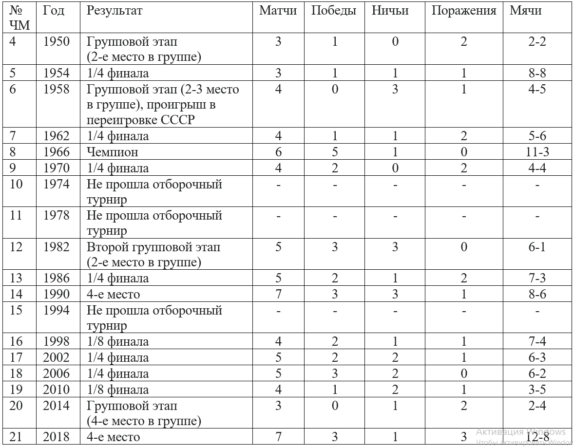 Сборная Англия по футболу на чемпионатах мира выступает с 1950 года. В финальную часть турнира через сито отбора англичане пробились 15 раз. Единственная медаль, завоеванная английской сборной – домашнее золото 1966. В этой статье расскажу о лучших выступлениях англичан на чемпионатах мира. А сначала покажу, как англичане выступали на всех мировых первенствах.