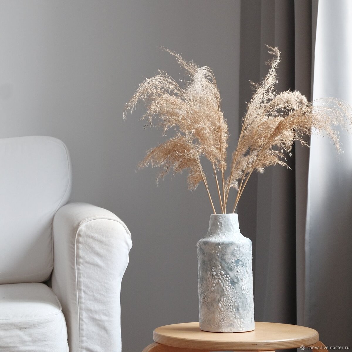 Ваза - это атрибут праздника и незаменимый элемент декора для вашего дома. Мини-подборка от Livemaster поможет вам выбрать свою идеальную вазу. Стиль ваби-саби Создаём уют в доме вместе с текстурной вазой от мастерской из Перми CANVA. Ваза серо-голубого цвета ручной лепки выполнена в стиле ваби-саби. Фактурная поверхность, как бы нарисованная временем, создана при помощи специальной керамической глазури. Ваза прекрасно будет смотреться в любом современном интерьере и подойдёт для любых букетов. На фото: Текстурная интерьерная ваза ручной работы в сером цвете Романтичный винтаж Кувшинчик ручной работы с эффектом состаривания и золотыми веточками для самых летних букетов. Загляните в мастерскую Rozmarin Ceramics из Твери. На фото: Роскошный кувшин - ваза Рельеф аммонита Лёгкая и прочная ваза от мастера Оксаны Волковой сделана для уюта в доме и создания по-настоящему летней атмосферы. Рельеф аммонита с одной стороны и окаменелой рыбы с другой сделаны из папье-маше в единственном экземпляр