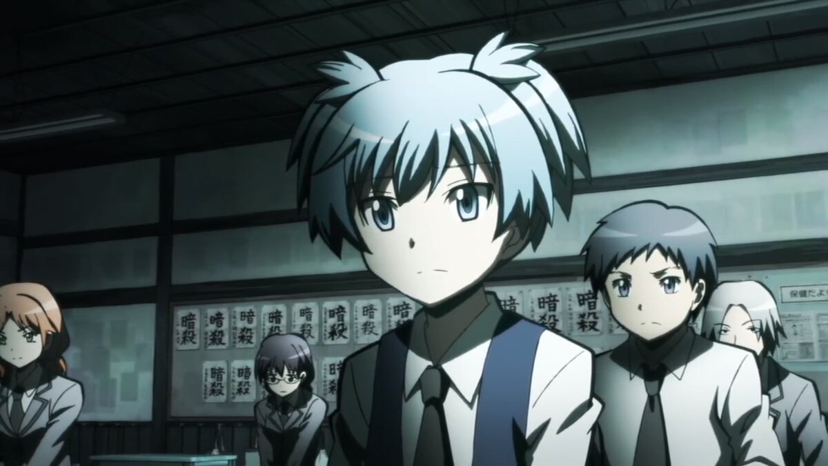 - Нагиса Сиота – главный герой и лицо данного сериала (наравне с Коро-сэнсэем). И да, это парень, но почему он выглядит как девушка – я вам не скажу, спойлер (да, это обосновано). Сначала кажется, что это – самый безобидный и спокойный парень во всём классе, который ничего не способен сделать, но позже сериал раскрывает ту страшную и пугающую его сторону – наклонности убийцы, в которых у Нагисы явный талант.