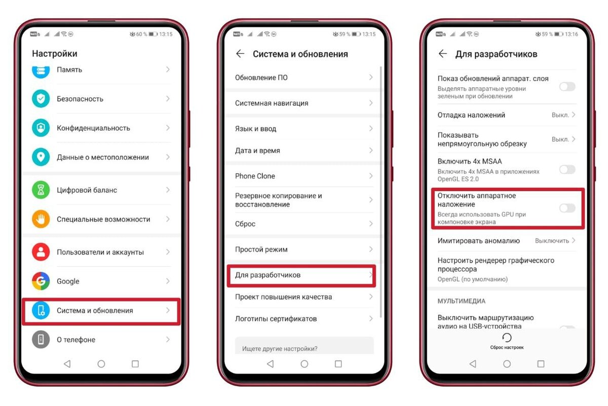 🤖 Проблема многих Android-смартфонов: медленно переключаются окна, открываются разделы, внезапно подвисают приложения. Есть решение: отключить функцию аппаратного наложения, которая по умолчанию работает в каждом Android. Как это сделать: 1. Открываем «Настройки» → «О телефоне». 2. Быстро кликаем по пункту «Номер сборки», пока не активируется меню. 3. Переходим в «Система» → «Дополнительно» → «Для разработчиков». 4. Листаем вниз до пункта «Отключить аппаратное наложение» и сдвигаем ползунок, чтобы активировать функцию. Параметр может называться «GPU ускорение». 5. Перезагрузите смартфон. Готово! Теперь интерфейс станет визуально плавнее работать. Всё благодаря видеокарте смартфона: после активации этой функции именно она отвечает за обработку графических элементов интерфейса (и делает его плавнее!).