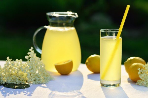 Ингредиенты: 10 л воды 30-50 кистей цветов бузины (черной) 1 кг сахара 3 лимона сок 1 свежевыжатого лимона бутылка охлажденного игристого вина (шампанского) Способ приготовления: 1. Цветки черной бузины и лимоны, нарезанные дольками, складываем в неметаллическую посуду и заливаем водой. Оставляем на 24 часа, чтобы жидкость настоялась. 2. Процеживаем через сыто воду и выбрасываем жмых. Добавляем сок лимона и сахар. Перемешиваем, пока сахар не растворится, и оставляем еще на 24 часа. 3. Разливаем по бутылкам и оставляем на 3 недели, чтобы в лимонаде образовался углекислый газ в виде игристых пузырьков. Чтобы не ждать несколько недель, охлажденный напиток разливаем по бокалам и добавляем немного шампанского. Подаем гостям с ломтиком лимона или льдом.