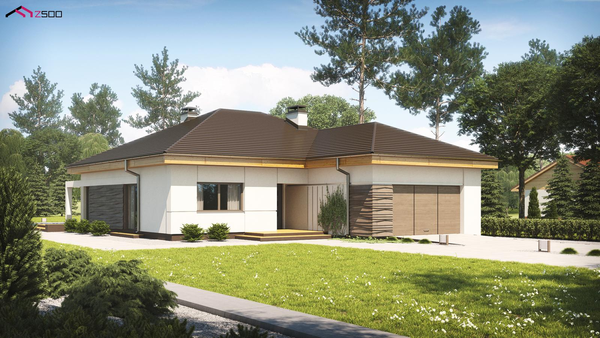 Z96 Проект одноэтажного дома с фронтальным выступающим гаражом и возможностью обустройства мансарды.