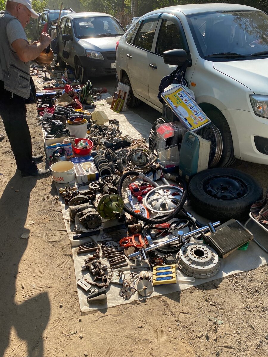 Всем привет. Статья пространная и обзорная. Ибо на сегодняшний день, там довольно трудно, что либо систематизировать, кроме инструмента. И то - с инструментом лежит всякое. Но вот меня заинтересовали некоторые товары, которые может я и приобрел-бы. Но было одно "НО". На них не было документов. Итак погнали... Запчасти: Инструмент: Бам! Котлы! Соседка по даче спрашивала: Рабочий? Да! Гарантия? Неделя. Документы? Какие, сынок? Пошли дальше: Только сейчас приметил гантели "а-ля 90-е", выточенные на станке. Велосипеды: Есть документы? Где-то были, но не здесь... Еще инструменты: А на электроинструмент? Нет! А тут удивила цена - за этот графинчик просили 300 рублей: А с крышкой - 700! Но ее - нет. А тут, как будто из старого фильма фотка - а у меня вон чего есть: Ярким пятном смотрится одежда: Сегодня очень много гастарбайтеров: Прямо целыми бригадами ходят: На пылесосы - тоже нет документов: Ключи, кстати - одна из самых покупаемых вещей: Лично видал, как один дяденька покупал штук 40 за
