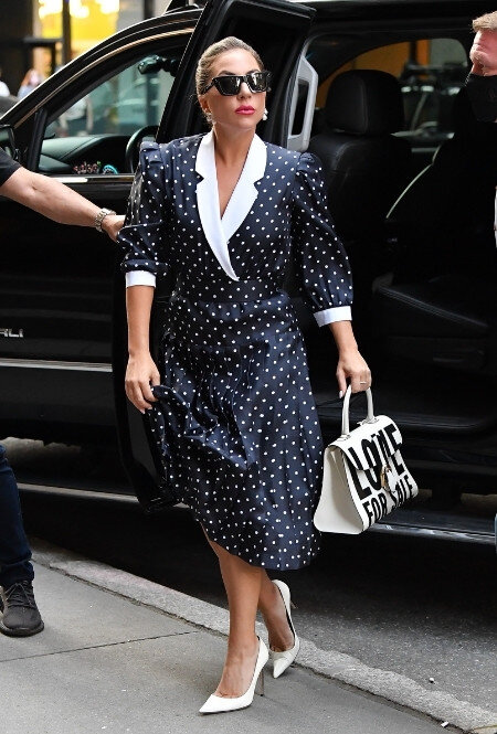 В стиле ретро: Леди Гага в женственном платье в горошек и лодочках