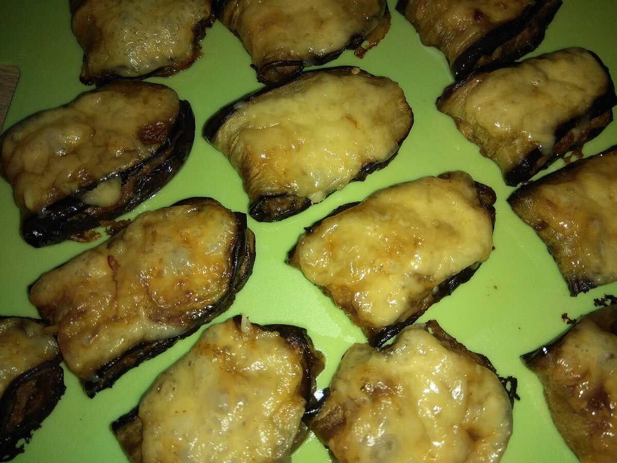Даже мужчины, уставшие уже от столов с изобилием овощей, с удовольствием уплетают такие баклажаны с прослойкой фарша. Получилось слишком вкусно, поэтому абсолютно все попросили добавки. Необходимые продукты: 3 – 4 баклажана 600 гр фарша (я соединила 200 гр говяжьего+200 свиного+200 из индейки) 1 лук 1 морковь Зеленый лук 1 ст.л сметаны 1 ст.л панировочных сухарей 2 зубчика чеснока Соль, перец 100-150 гр сыра Приготовление: 1).Баклажаны порезать вдоль на тонкие пластины. Посолить и оставить на 20 минут. 2).Затем обтереть салфетками и каждый обжарить с двух сторон. 3).Вымесить фарш. Добавить 2 зубчика чеснока через пресс, сухари, зеленый лук, специи. По рецепту нужно добавить еще почему-то жареный лук и морковь. Но я не стала этого делать. Также не стала класть сметану. На мой вкус жирности было достаточно. Наверное, надо положить сметану, если фарш суховат. Сформировать тонкие котлетки. 4).Далее берем пластину баклажана и кладем котлетку на половинку язычка. Поправляя фарш по форме бакл