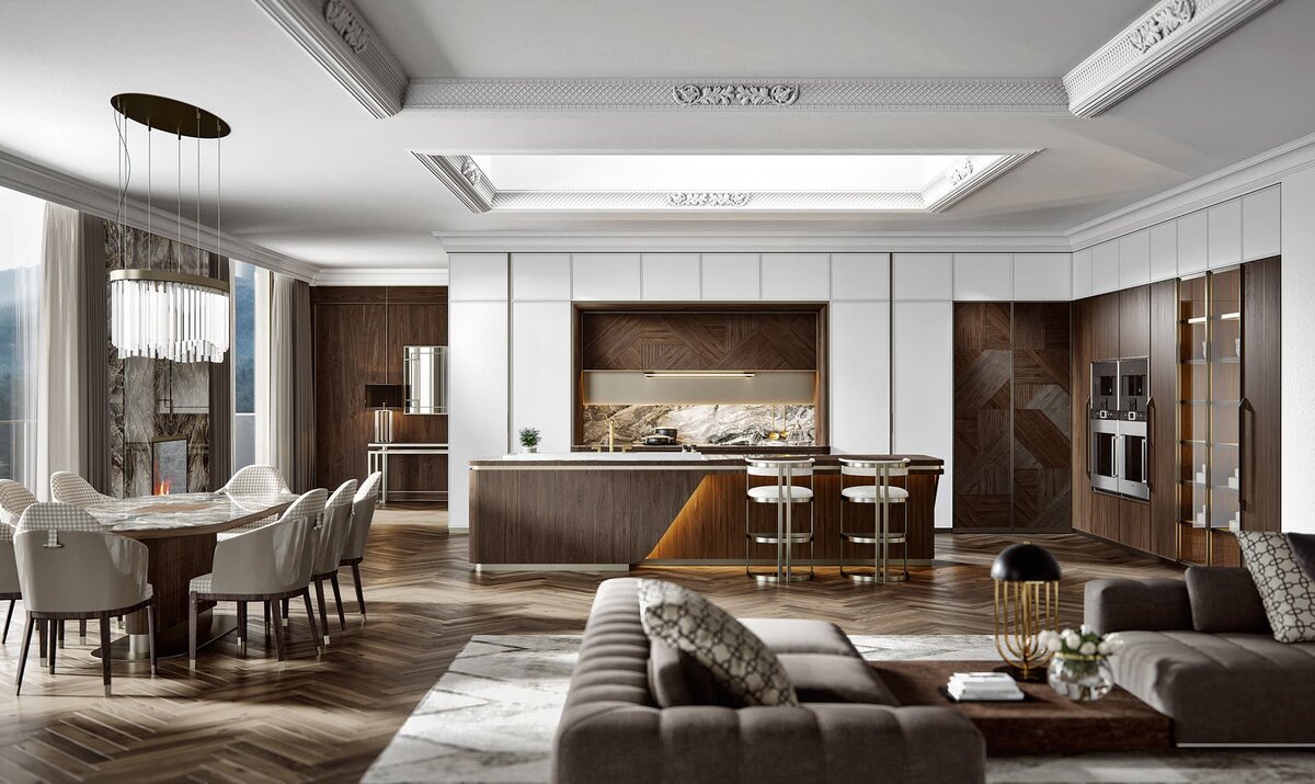 Итальянский бренд Old Line известен на весь мир благодаря высокому качеству и элегантному дизайну продукции. Новая серия марки получила название Glamour Collection. В этом имени отражена основная суть концепции последней линейки — она получилась стильной, современной, роскошной, удобной и максимально личной. РАБОЧАЯ И ОБЕДЕННАЯ ЗОНЫ GLAMOUR COLLECTION ОТ OLD LINE Для создания Glamour Collection бренд использовал весь свой 40-летний опыт, исследовательский талант и жажду создавать уникальные предметы для комфорта покупателей. Дизайн новой серии — смесь природной и простой красоты, гламурного лоска и функциональности. В коллекции есть несколько предметов мебели. Стильный остров имеет закругленные края, что идеально вписывается в концепцию удобной современной кухни с минимумом острых углов. Остров разделяет диагональная линия — одна его часть выполнена из мрамора, а другая из древесины. Зона из камня представляет собой рабочую область — не ней располагаются подставки для хранения аксессуа