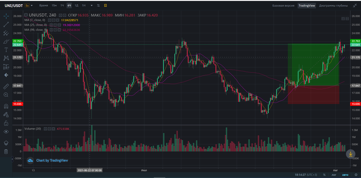 Добрый вечер коллеги ! Сообщаю результаты сделки которую рекомендовал вам ранее. Итого +26.6 % к депозиту дал сегодня токен UNI ✋😁